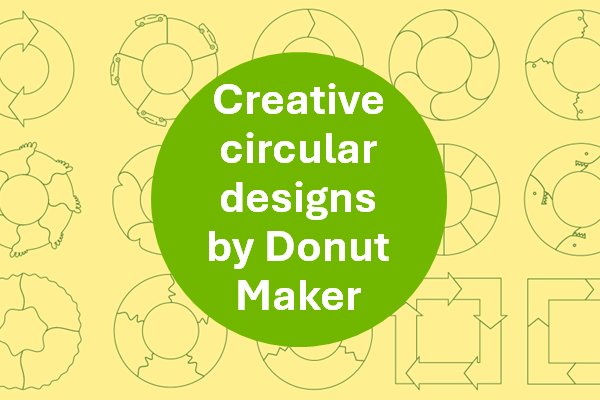 To make many of these designs, we use the Donut Maker with support from presentation software or other design tools. Below are some sample circular creations by the Donut Maker. Hopefully, they inspire you to create something nice.